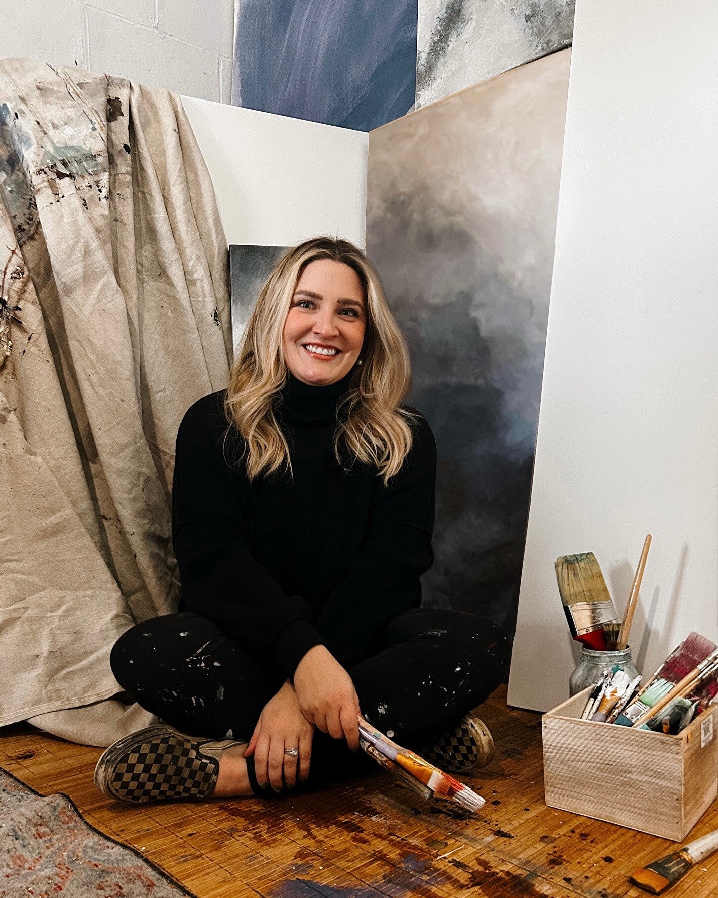 Glendinning Paul is a multidisciplinary artist born and raised in Alabama. She discovered her passion for art at an early age and went on to study at Auburn University where she cultivated her skills as a visual artist and explored her love for dance. Glendinning’s work is characterized by a deep exploration of movement. As a dancer, she has a unique understanding of how the body moves and uses this to create pieces that are both dynamic and expressive. Her work is often high in contrast, with an emphasis on bold brush work and movement. Glendinning continues to push the boundaries of her art, exploring new techniques and mediums to create work that is both innovative, but personal. She resides in Birmingham, Alabama with her husband and five-year-old son.Â